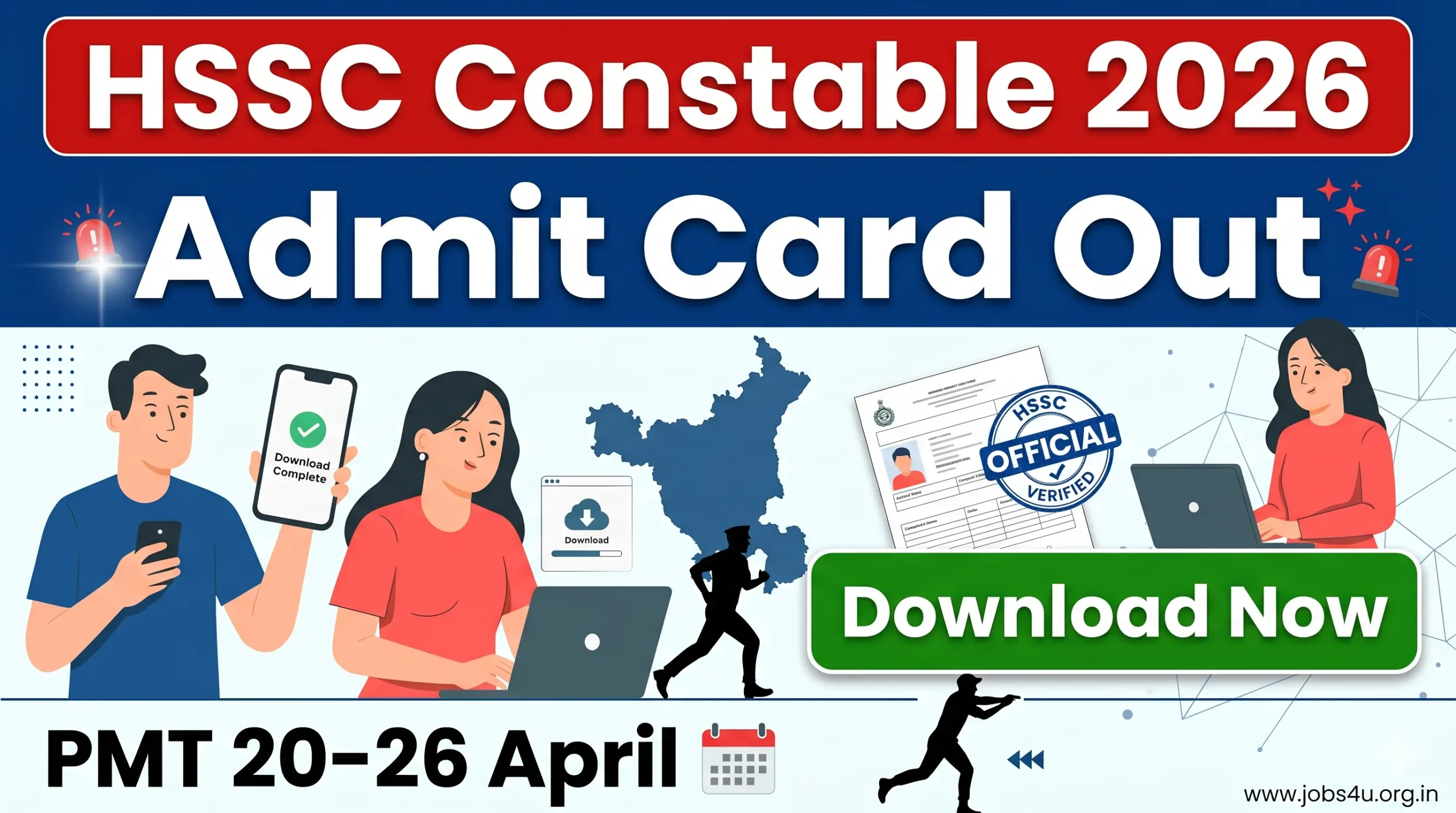HSSC Constable (Haryana Police Constable) Admit Card 2026 Notification for Physical Measurement Test (PMT) has been released by Haryana Staff Selection Commission. 17 April 2026. Candidates shortlisted on the basis of HSSC CET can download their hall ticket from the official website hssc.gov.in. PMT is temporarily set 20 April to 26 April 2026 At various centres. This admit card is mandatory to appear in the Physical Measurement Test. Read below for direct download link, step by step process, physical test details and important instructions for HSSC Constable Admit Card 2026.